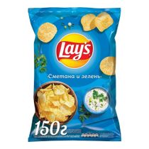 Lay's — чипсы, каждая пачка которых изготовлена из специально отобранного картофеля и соответствует самым высоким стандартам качества. Сливочный вкус сметаны и ароматной зелени в сочетании с хрустящими чипсами из натурального картофеля. Каждый день вкуснее с Lay's. 100% натуральный нарезанный картофель. Качественные ингредиенты. Нежный вкус сметаны и ароматной зелени.