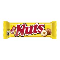 Шоколадный батончик Nuts с цельным фундуком, карамелью и нежной нугой, покрытый молочным шоколадом.